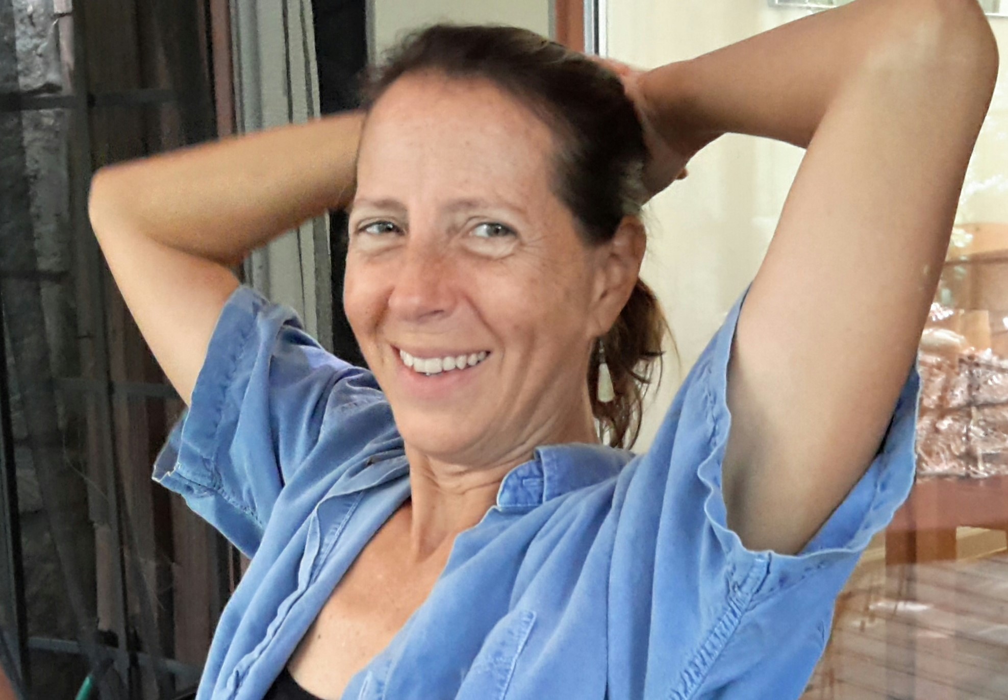 (pesca)-vegetarian, but Dan enjoys a steak from time to time. Neither of us smokes tobacco. We both love to swim